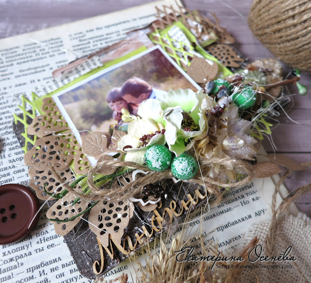 Использовала бумагу из коллекции "Мой малыш", этот лист бумаги как никогда лучше вписался в работу. Для меня это идеальное сочетание зеленый+крафт